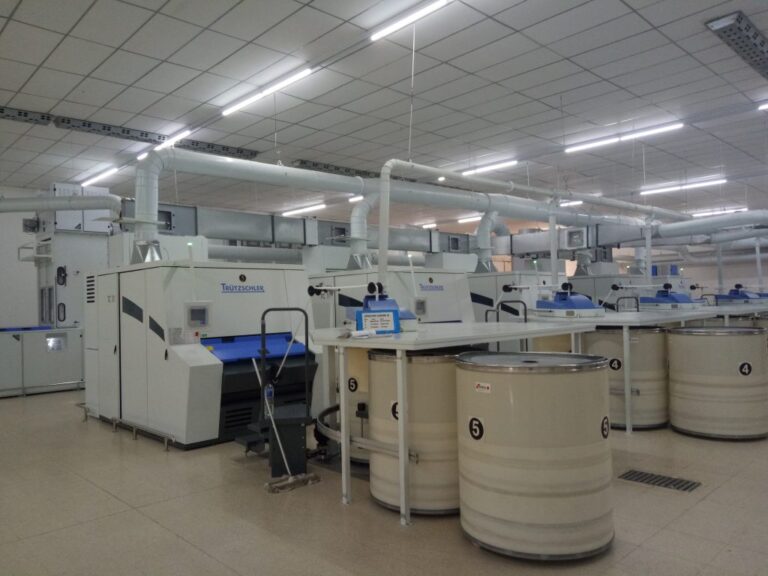 AESA Air Engineering provides air conditioning and waste removal systems for spinning factories, ensuring optimal humidity, temperature, and air quality for various fibers while meeting OSHA standards.